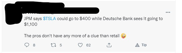 Tom> Best observation I noticed today. The pros really don’t have any more of a clue than you on what will happen, so what makes you think that you’re smarter than they are? If Tesla goes into an up move, go long. If it caves be short. Keep it simple and clear.